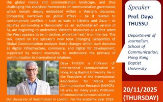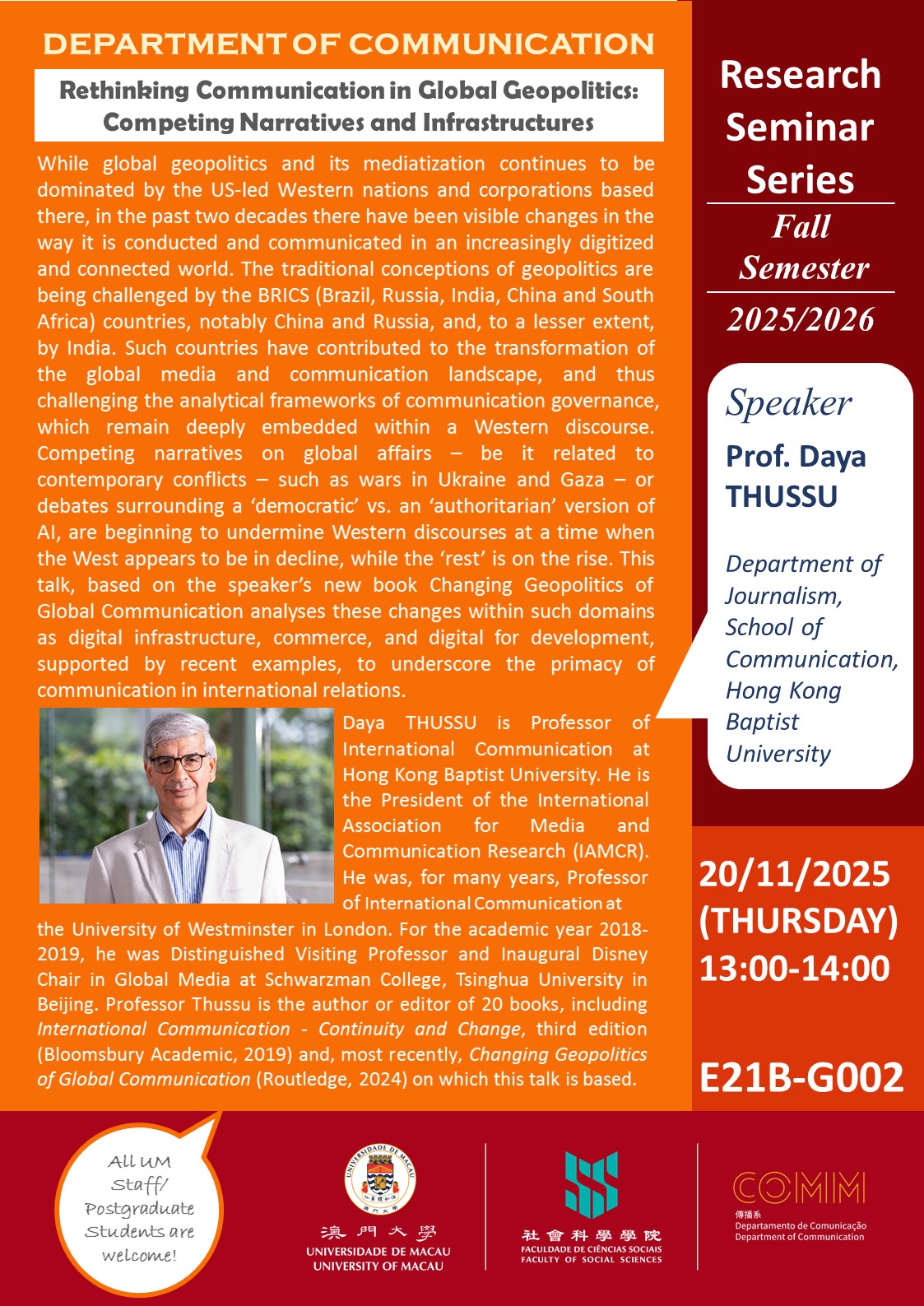 傳播系講座: Rethinking Communication in Global Geopolitics: Competing Narratives and Infrastructures 講者: ...