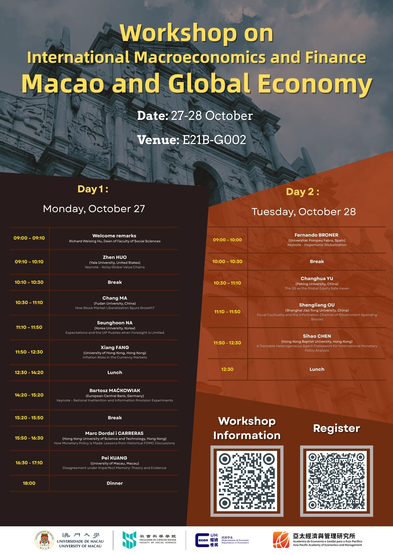 Workshop on International Macroeconomics and Finance: Macao and Global Economy Date:27-28 October 2 ...