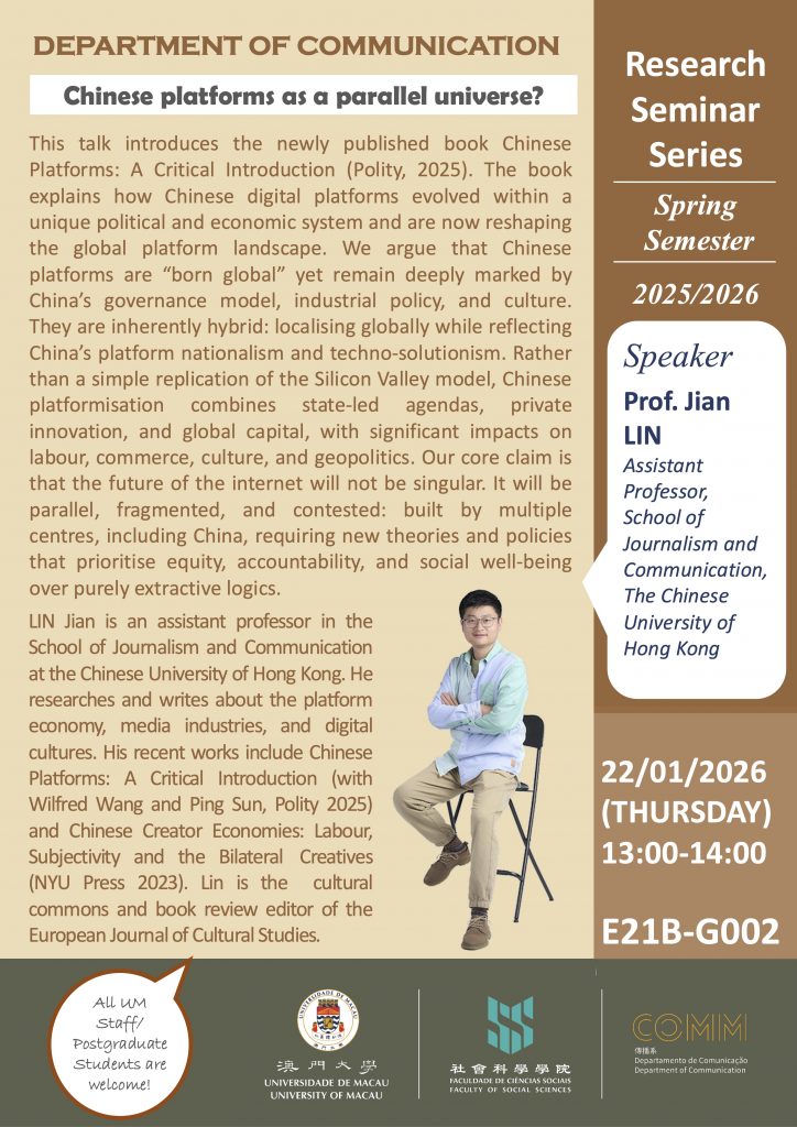 Speaker: Prof. Jian LIN, Assistant Professor, School of Journalism and Communication, The Chinese University of Hong Kong