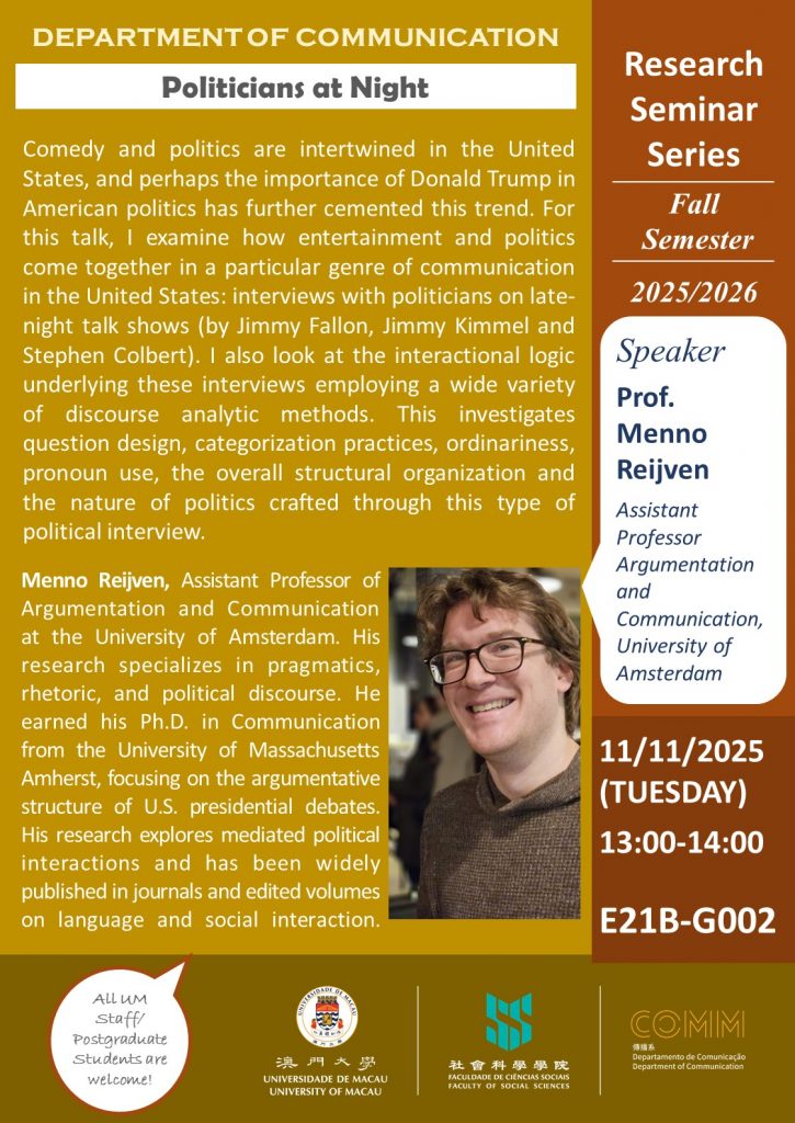 講者: Menno H. Reijvan教授/阿姆斯特丹大學人文學院論證與傳播助理教授