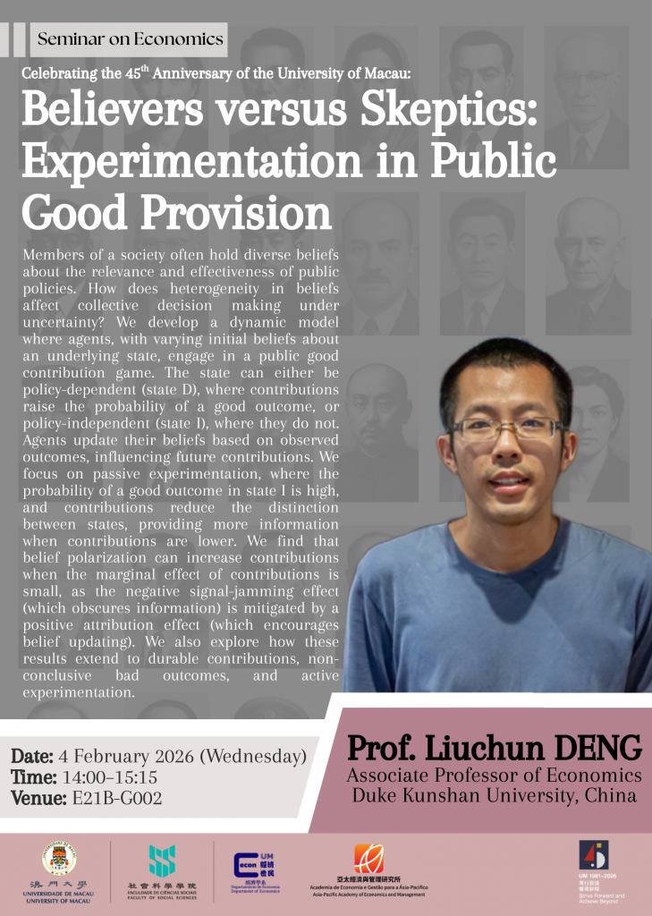 經濟學系講座: Believers versus Skeptics: Experimentation in Public Good Provision