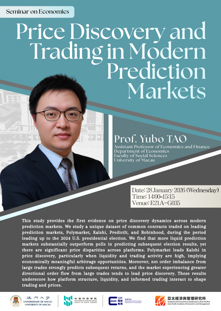 Speaker: Prof. Yubo TAO, Assistant Professor of Economics and Finance, Department of Economics, University of Macau