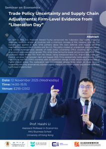 Speaker: Prof. Haishi LI, Assistant Professor in Economics, HKU Business School, University of Hong Kong