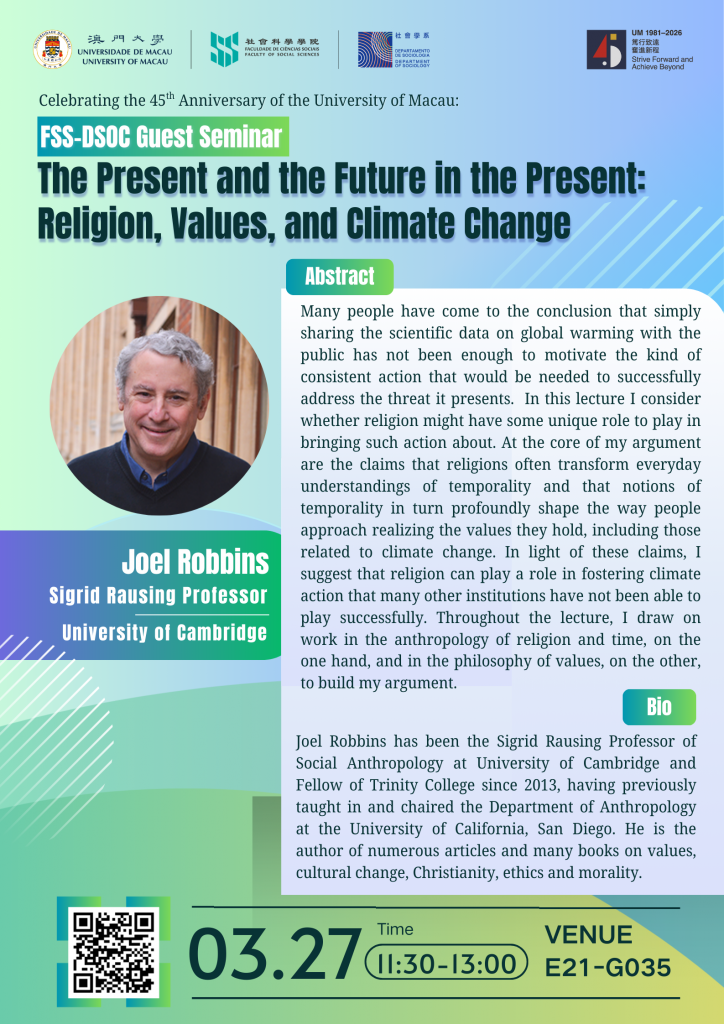 FSS-DSOC seminar: Celebrating the 45th Anniversary of the University of Macau – The Present and the Future in the Present: Religion, Values, and Climate Change