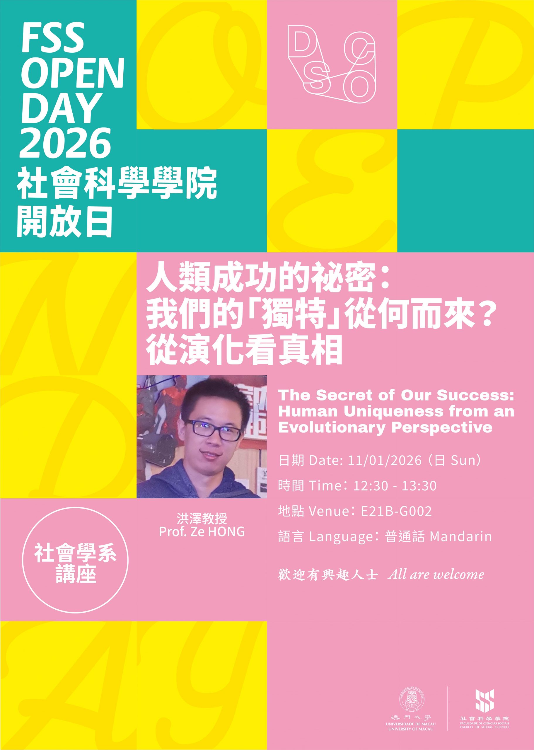In celebration of the UM 45th Anniversary, the UM Open Day will launch this Sunday, 11 January, with a grand opening. The Faculty of Social Sciences (FSS) has curated a range of diverse and engaging activities for you to join us for a journey that combines learning and enjoyment. They include: information booths with lucky draw, academic talks with free coffee, student work exhibition, book launch and lab visit.