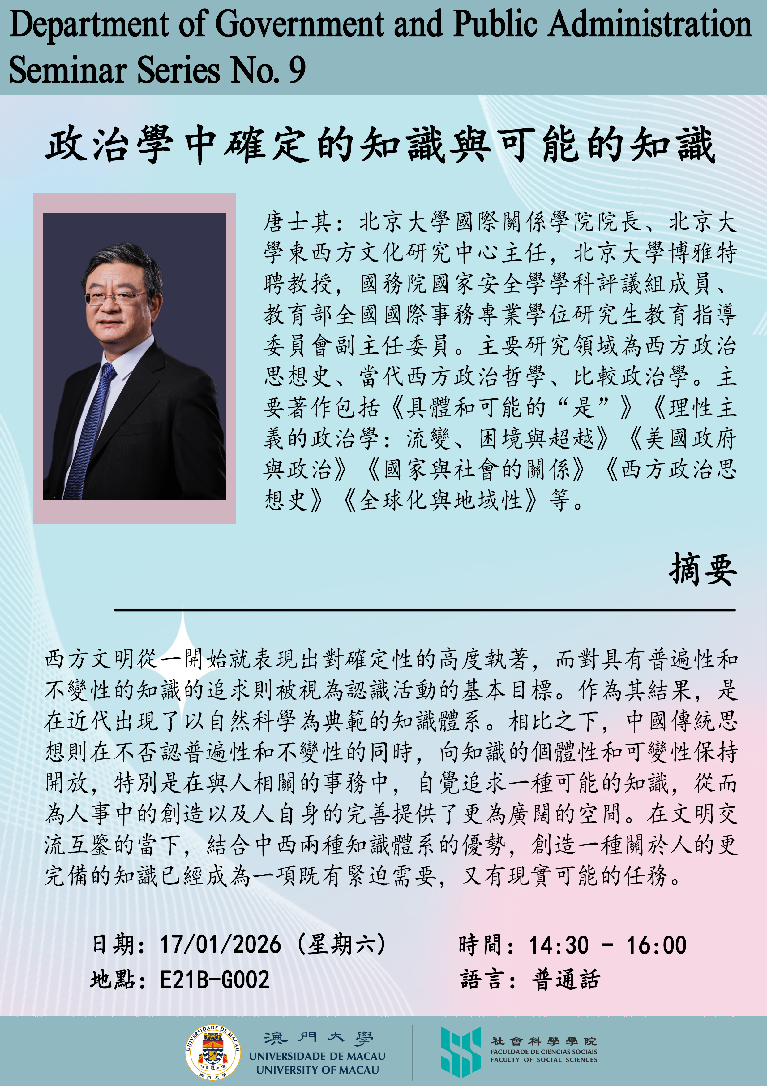 FSS-DGPA seminar: Certain and Possible Knowledge in Political ScienceSpeaker: Prof. Shiqi TANG, Boy ...