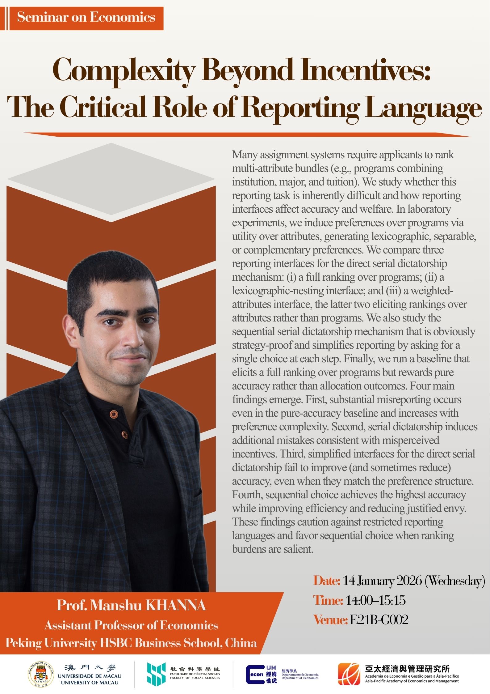 FSS-DECO seminar: Complexity Beyond Incentives: The Critical Role of Reporting Language