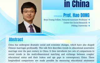 社會學系講座: Assortative Marriage in China 講者: 董浩教授, 北京大學社會研究中心長聘副教授 /博雅青年學者 日期:14/11/2025 (五) 時間:10:30 – ...