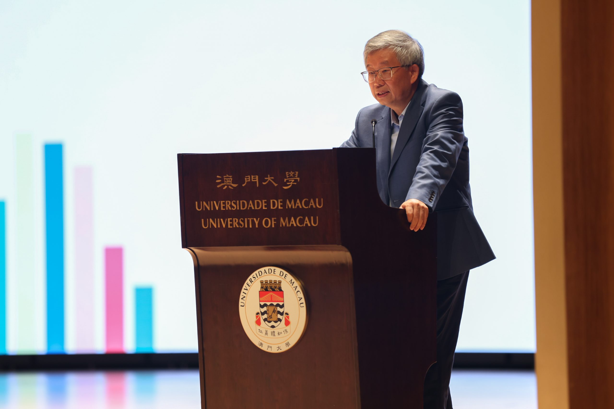 社會科學學院院長胡偉星熱烈歡迎剛加入FSS大家庭的新生。他寄語同學們應該珍惜在澳大的黃金時光,時刻勤奮自律,切勿虛度光陰。他並鼓勵大家善用校園資源,把握AI時代機遇創新地學習,愉快地學習去追求卓越成就,將個人成長與國家發展互相結合。